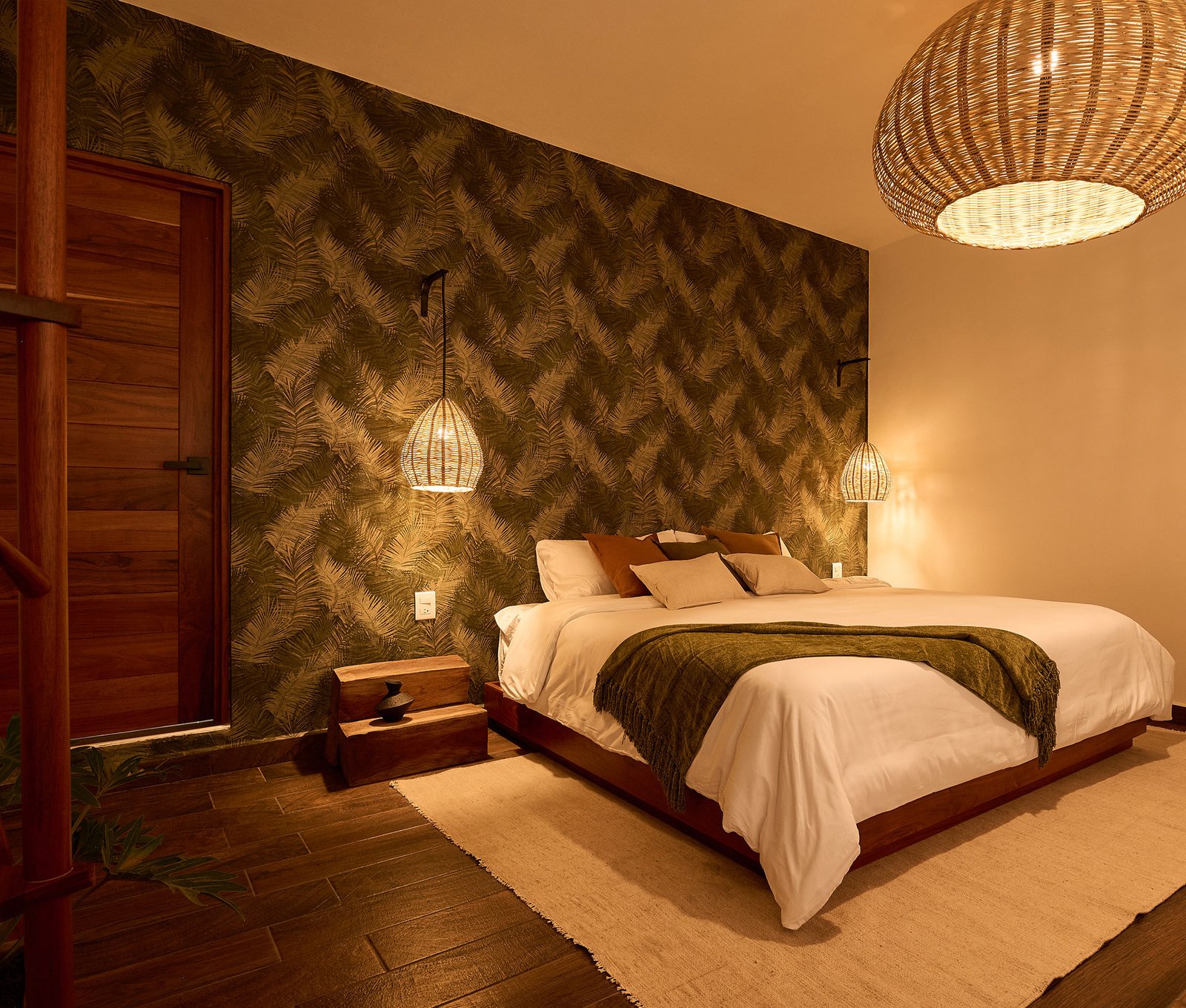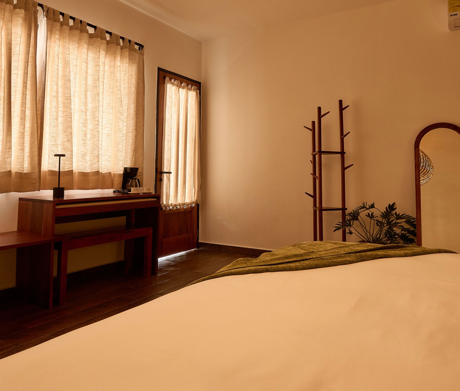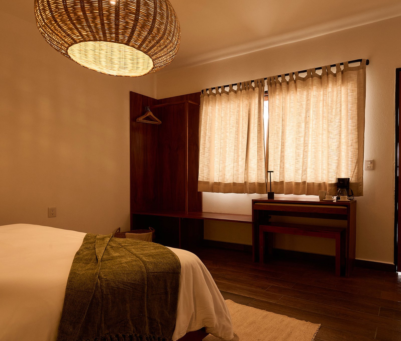 Cómoda habitación en un ambiente estéticamente agradable y decorada con materiales propios de la región.