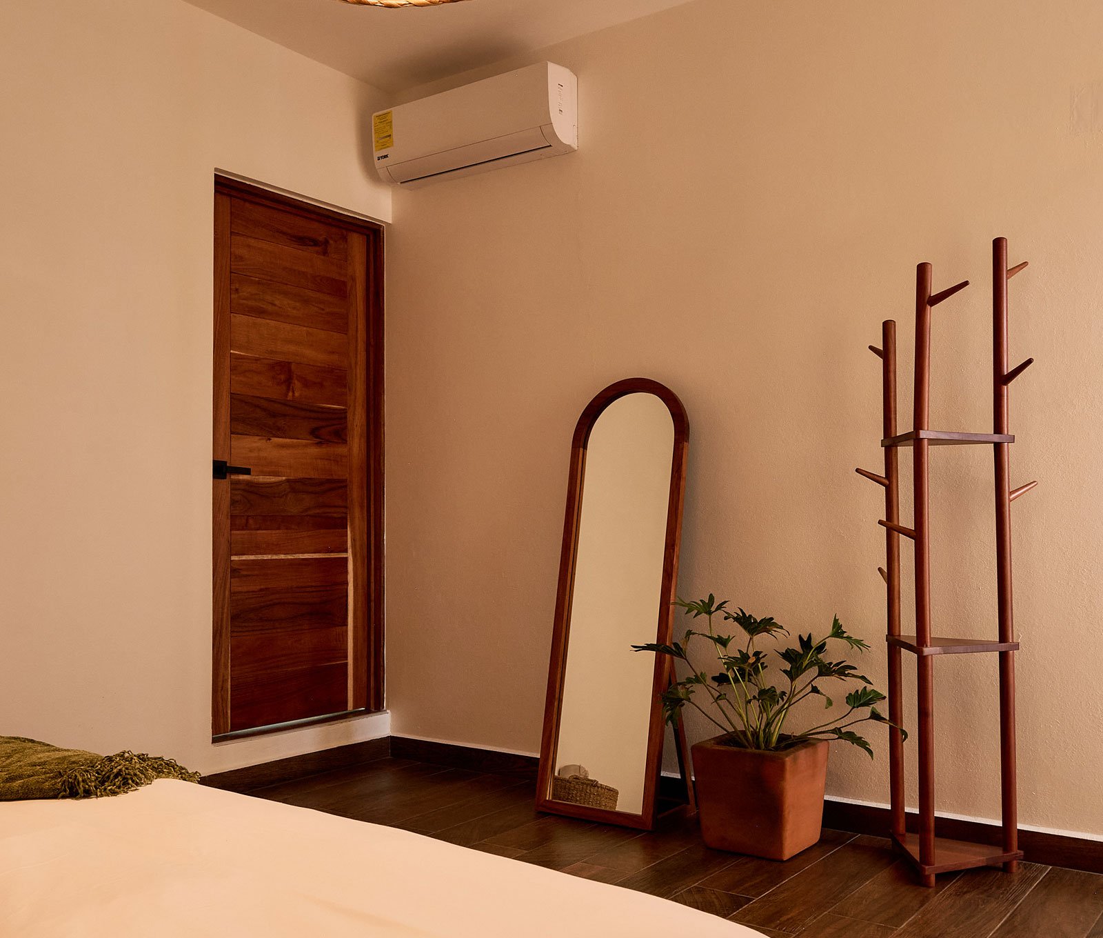 Bienvenido a la Habitación 7, un refugio de 24 m² pensado para ofrecerte el equilibrio perfecto entre calidez y funcionalidad. Para tu comodidad, la habitación cuenta con aire acondicionado silencioso, conexión a Internet de alta velocidad y enchufes ubicados estratégicamente junto a la cama. Encontrarás un armario espacioso, perchero y caja de seguridad electrónica para tus pertenencias.